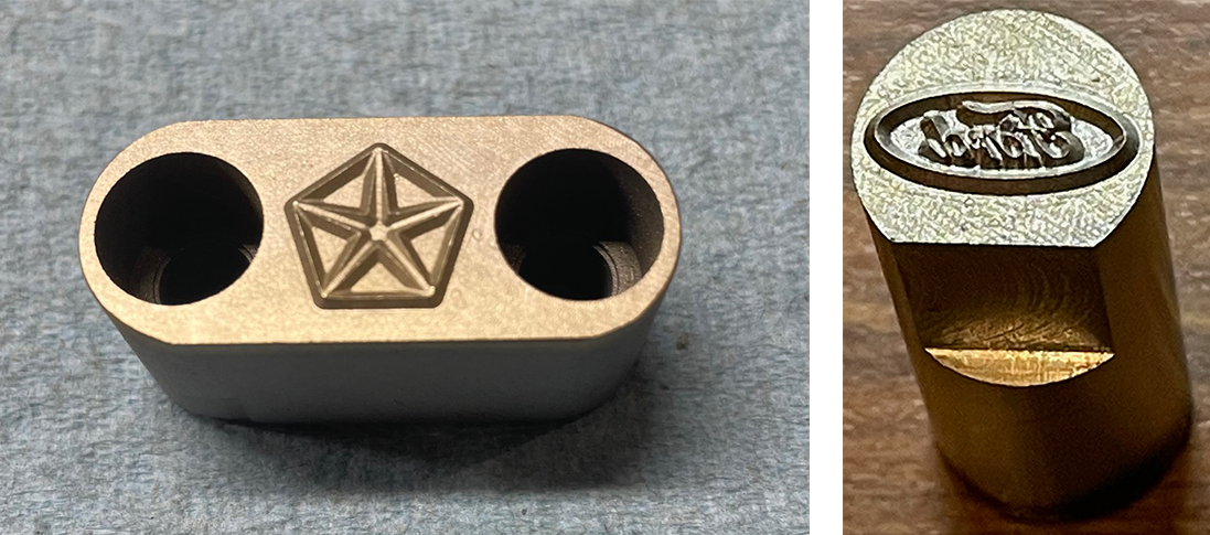 Automotive style marking stamps & Custom engraved steel stamps. Including holders, stamps, bottom markers, retainers.
